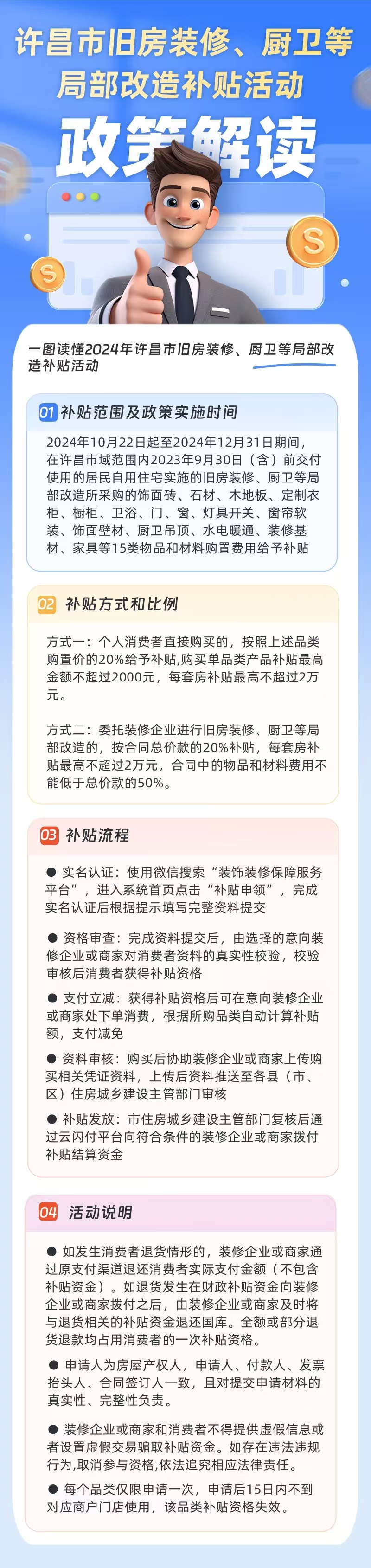 许昌市旧房装修、厨卫等局部改造补贴活动10月22日正式启动