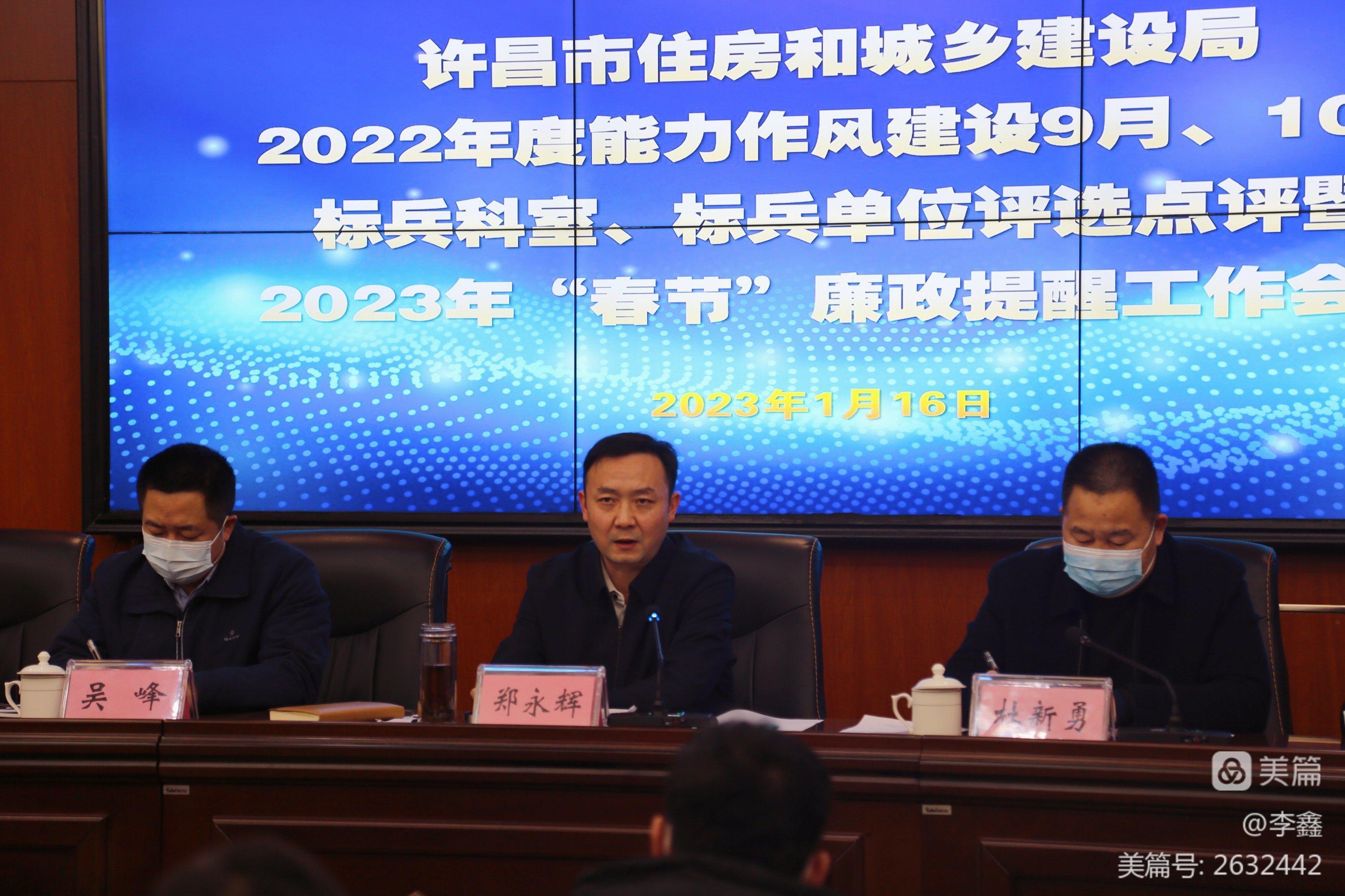 会议由局党组成员、副局长、机关党委书记杜新勇同志主持。局党组书记、局长郑永辉同志对2022年度能力作风建设9月、10月标兵科室、标兵单位评选工作进行了点评,并进行了“春节”前廉政提醒。
