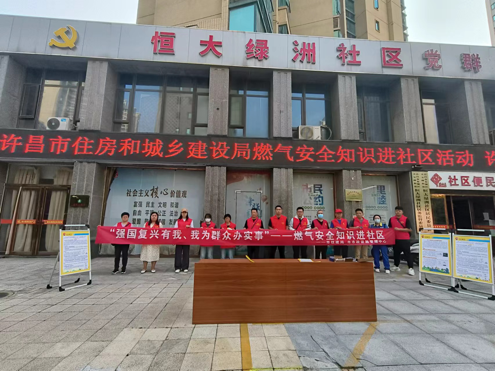 组织市政设施管理中心、天伦燃气公司,在恒大绿洲社区开展“强国复兴有我、我为群众办实事”燃气安全知识进社区活动。