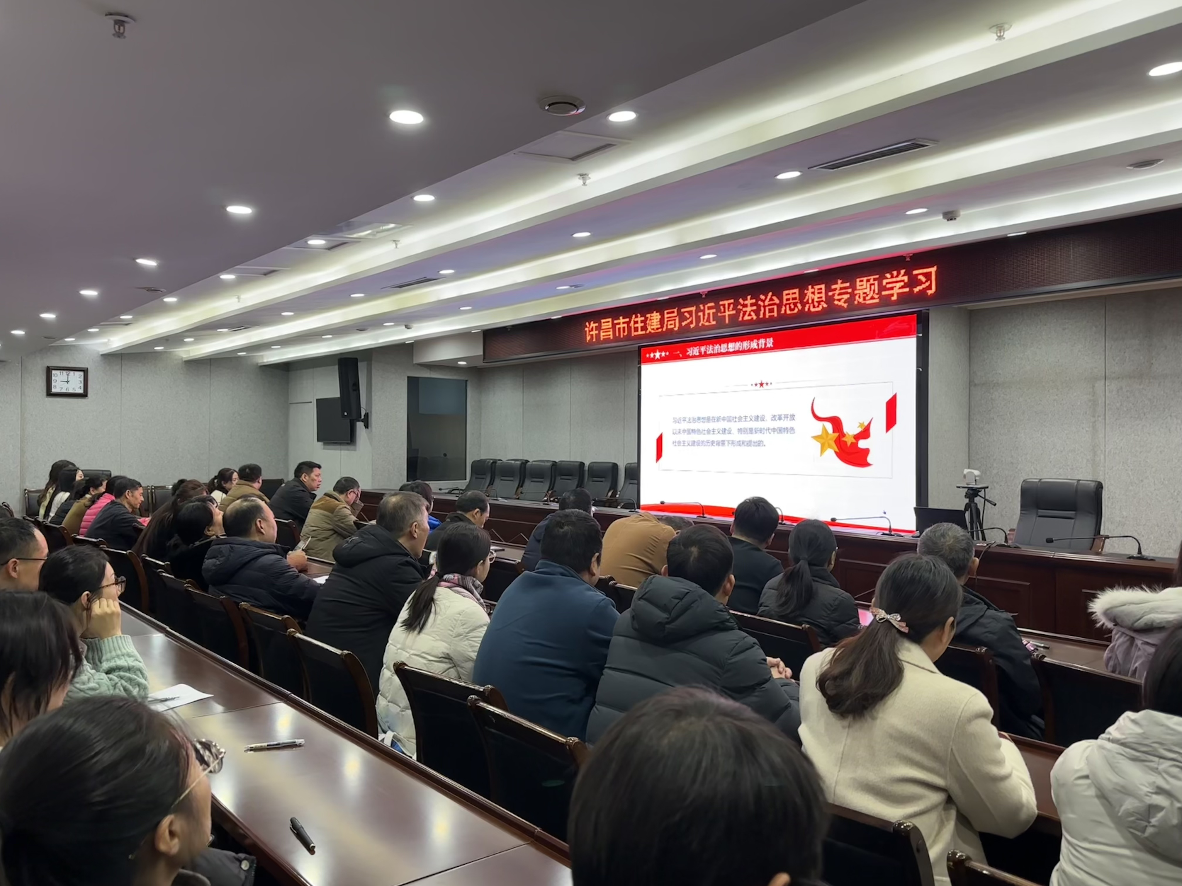 组织住建系统干部职工开展了习近平法治思想专题学习,局机关、局属事业单位50余名干部职工参加了集中学习。