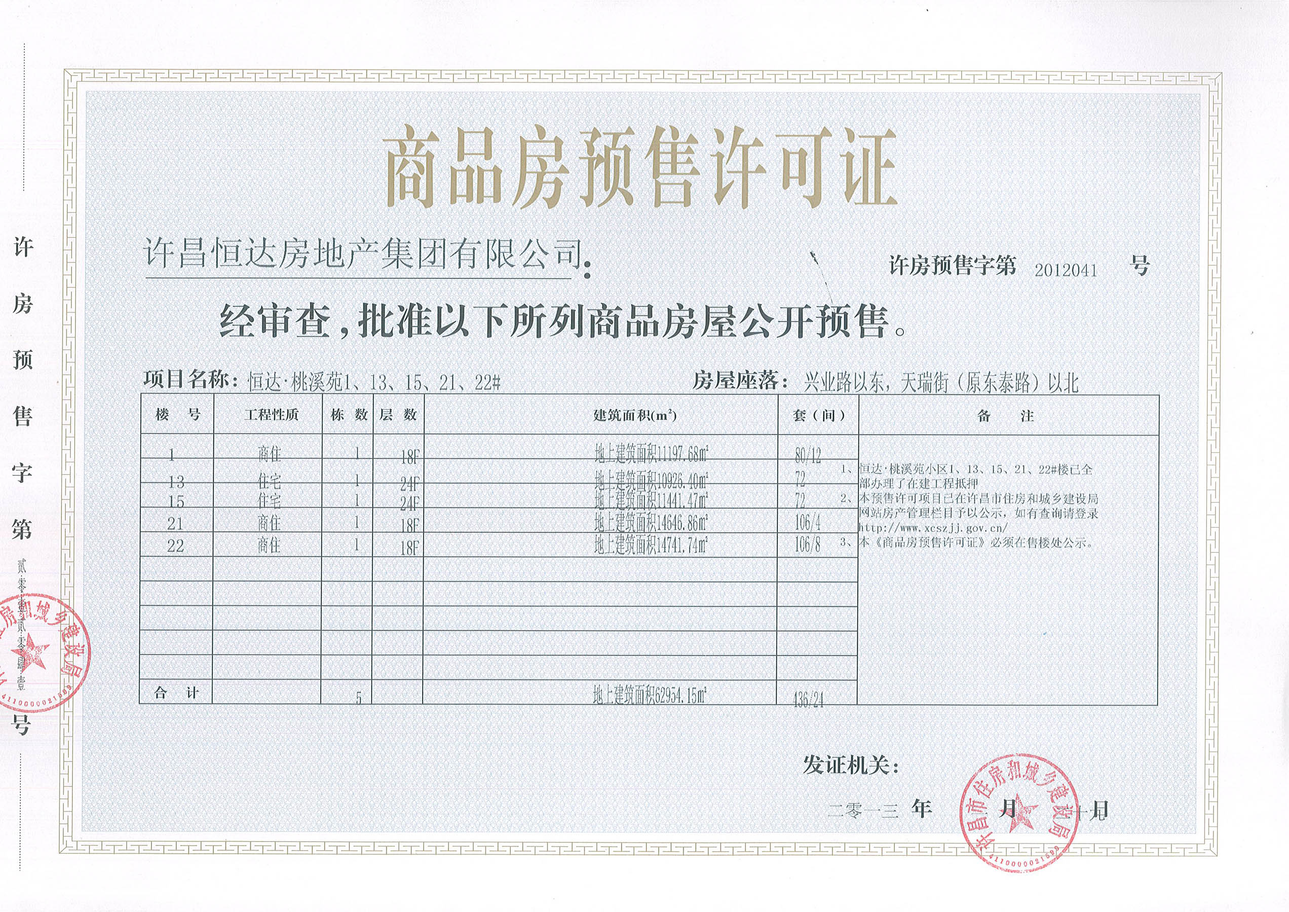 许房预售字第2012041号(许昌恒达房地产集团有限公司)