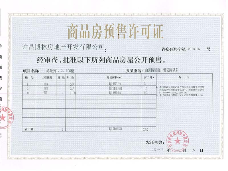许房预售字第2013005号(许昌博林房地产有限公司)