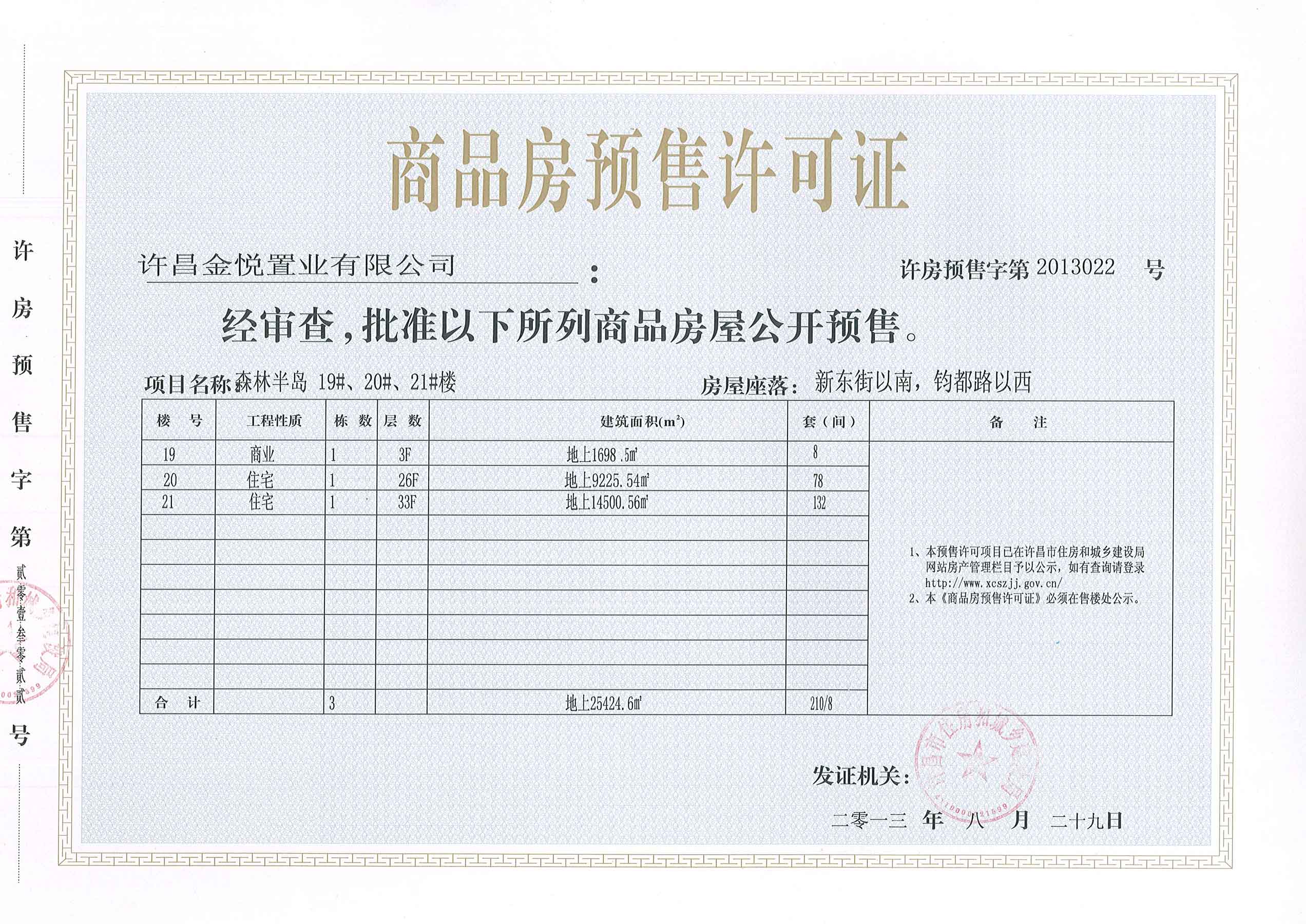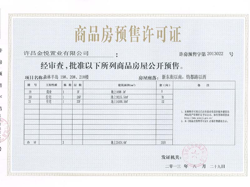 许房预售字第2013022号(许昌金悦置业有限公司)