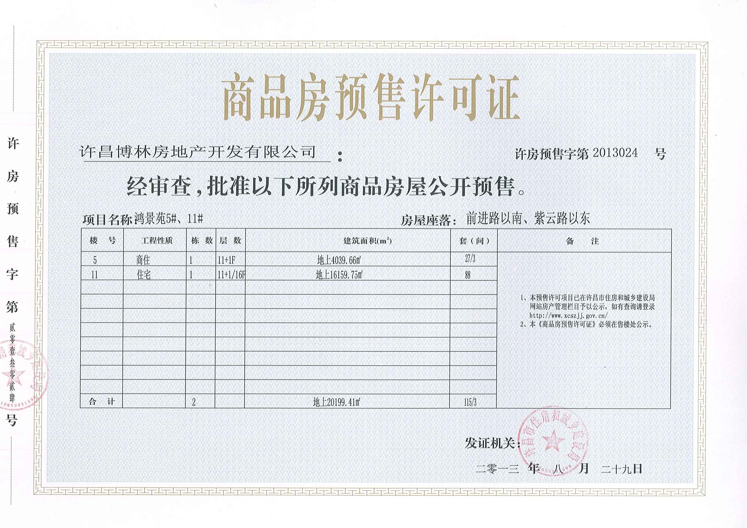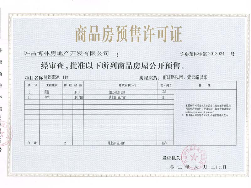 许房预售字第2013024号(许昌博林房地产开发有限公司)