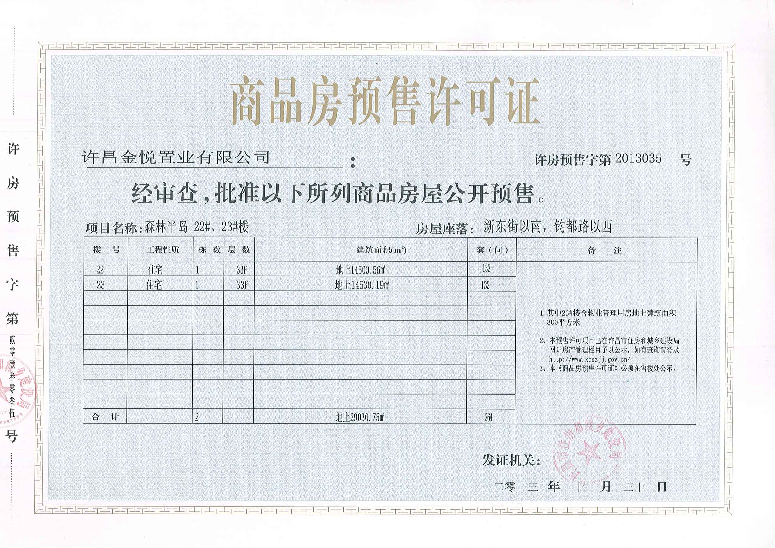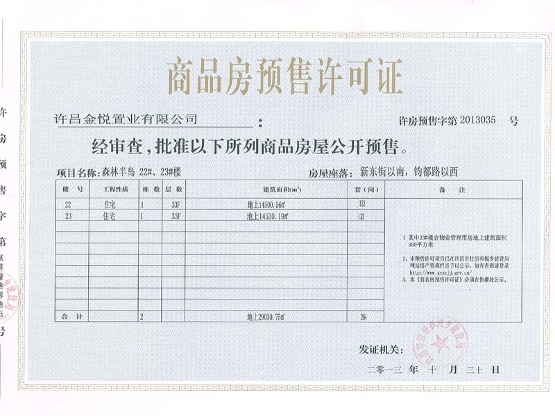 许房预售字第2013035号(许昌金悦置业有限公司)