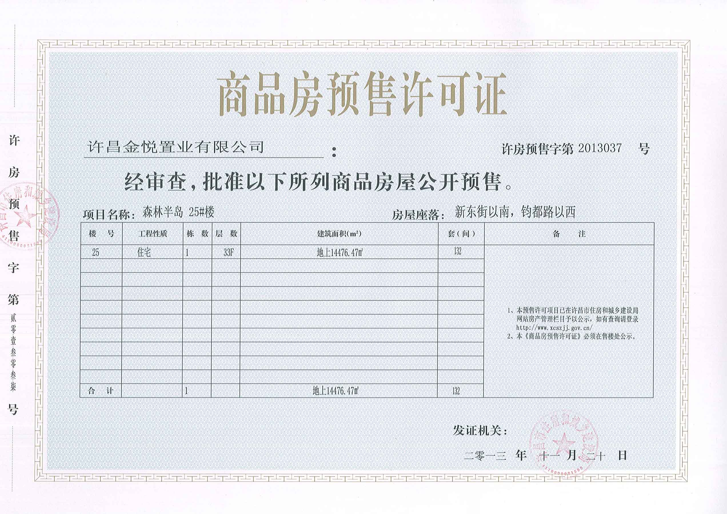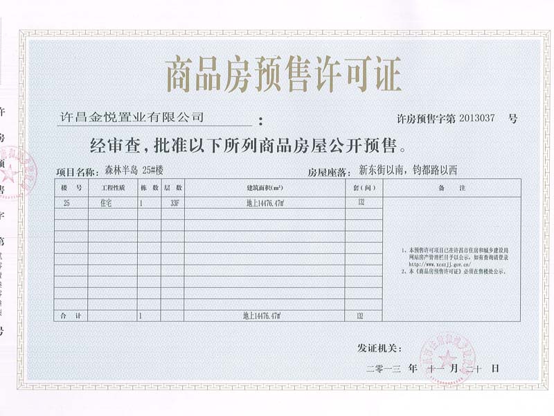 许房预售字第2013037号(许昌金悦置业有限公司)