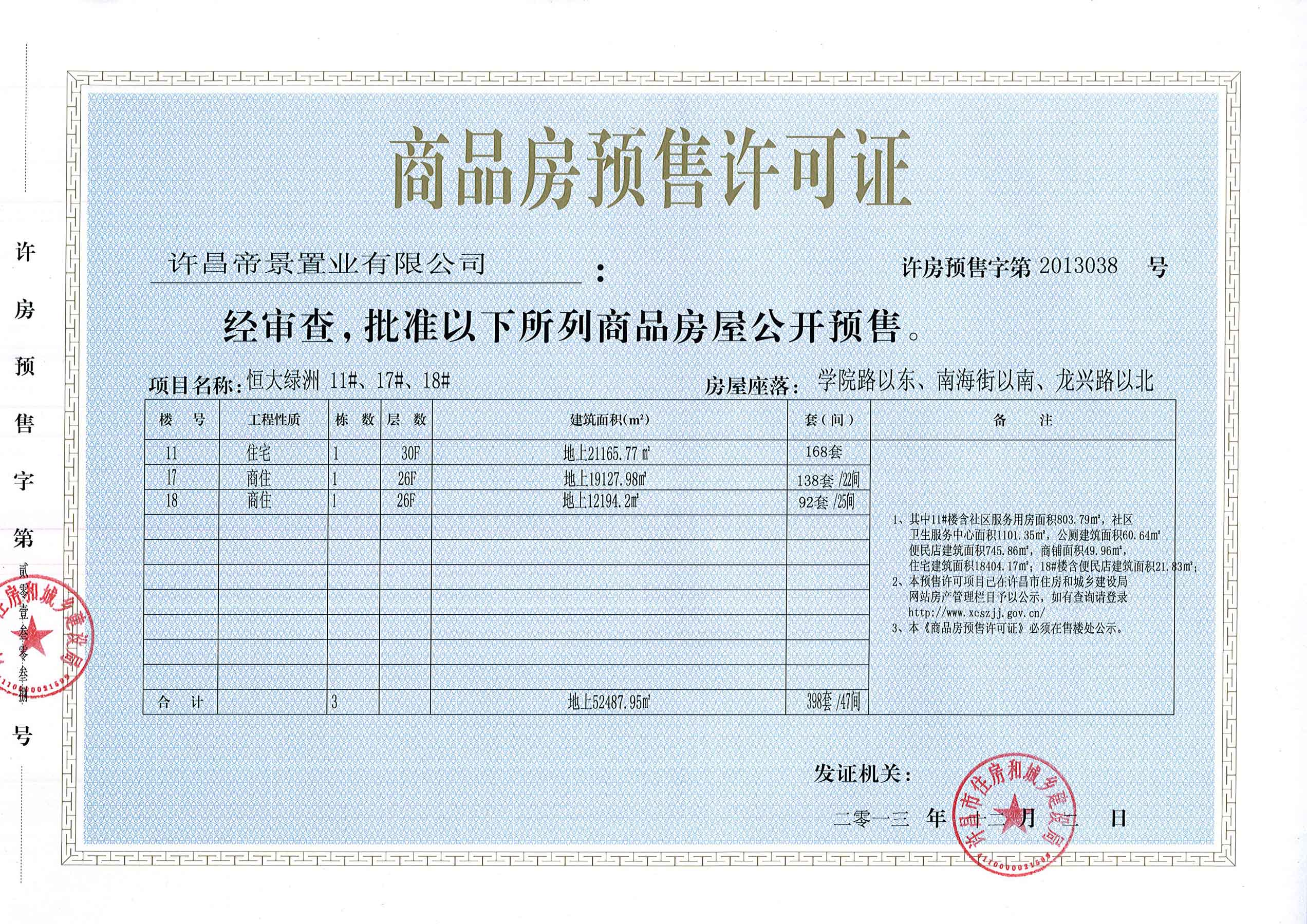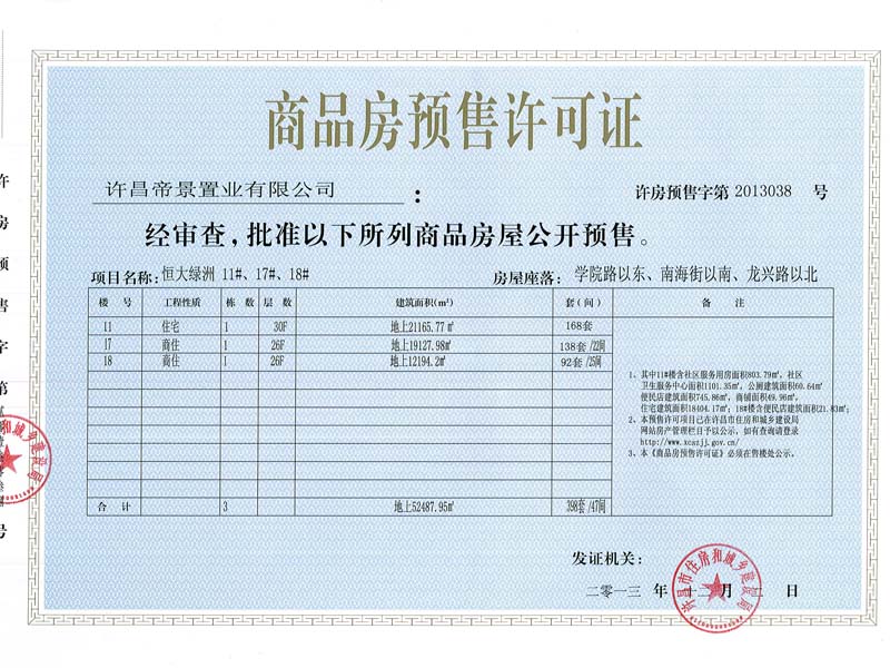 许房预售字第2013038号(许昌帝景置业有限公司)