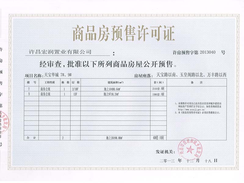 许房预售字第2013040号(许昌宏润置业有限公司)