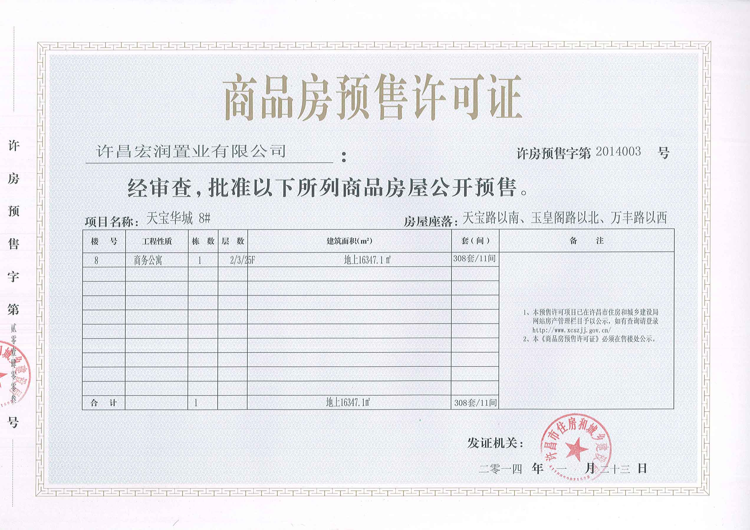 许房预售字第2014003号(许昌宏润置业有限公司)