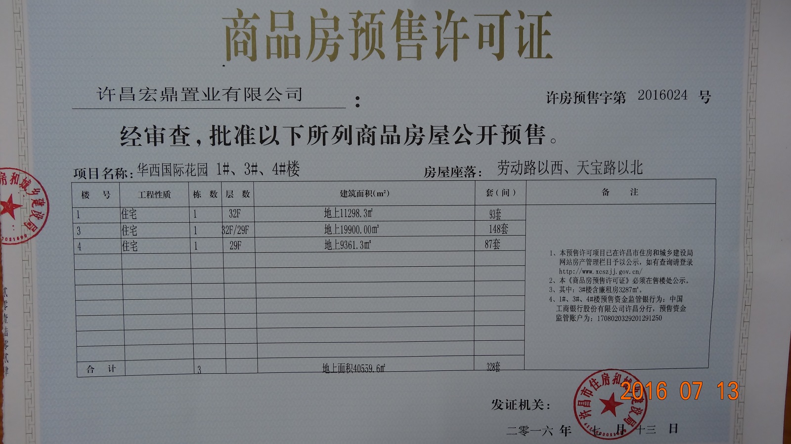 许房预售字第2016024号(许昌宏鼎置业有限公司)