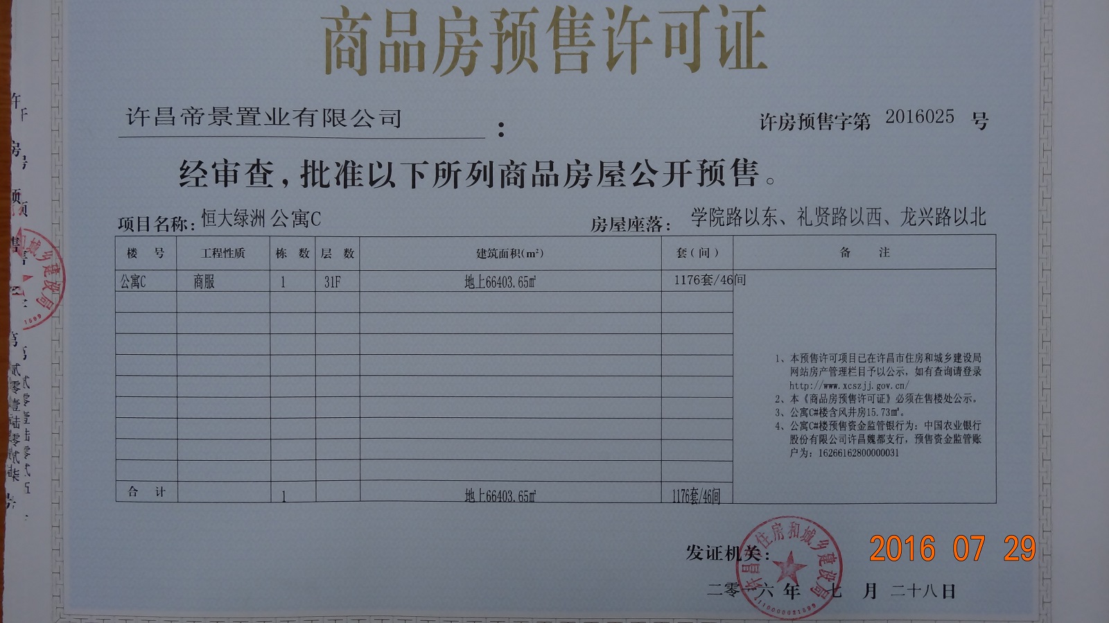 许房预售字第2016025号(许昌帝景置业有限公司)