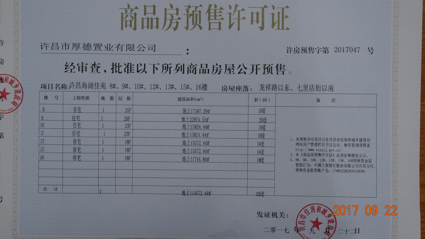 许房预售字第2017047号(许昌市厚德置业有限公司)