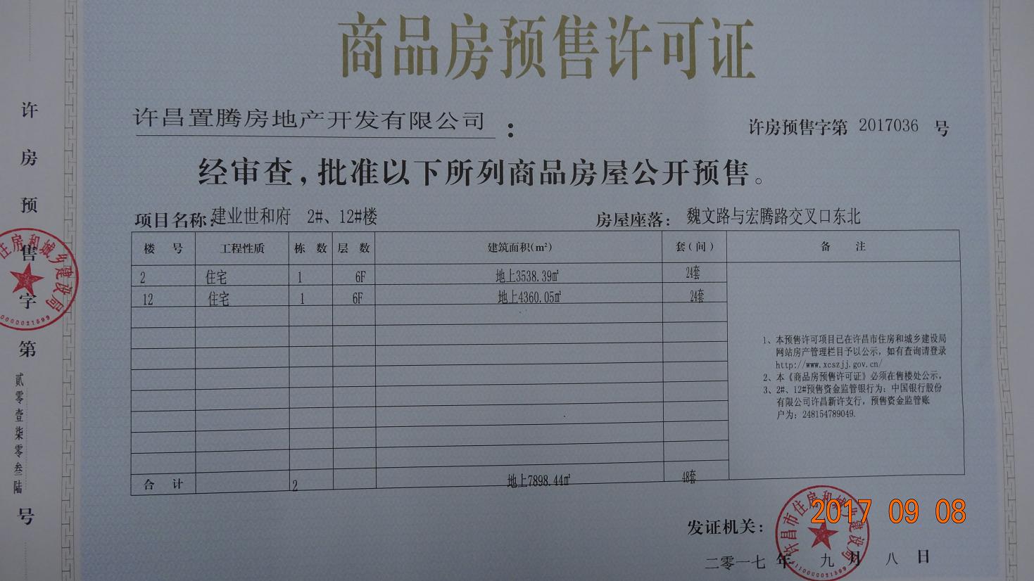 许房预售字第2017036号(许昌置腾房地产开发有限公司)