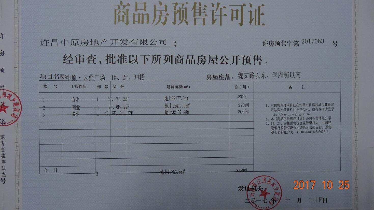 许房预售字第2017063号(许昌中原房地产开发有限公司)