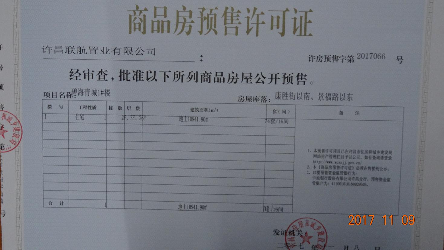 许房预售字第2017066号(许昌联航置业有限公司)