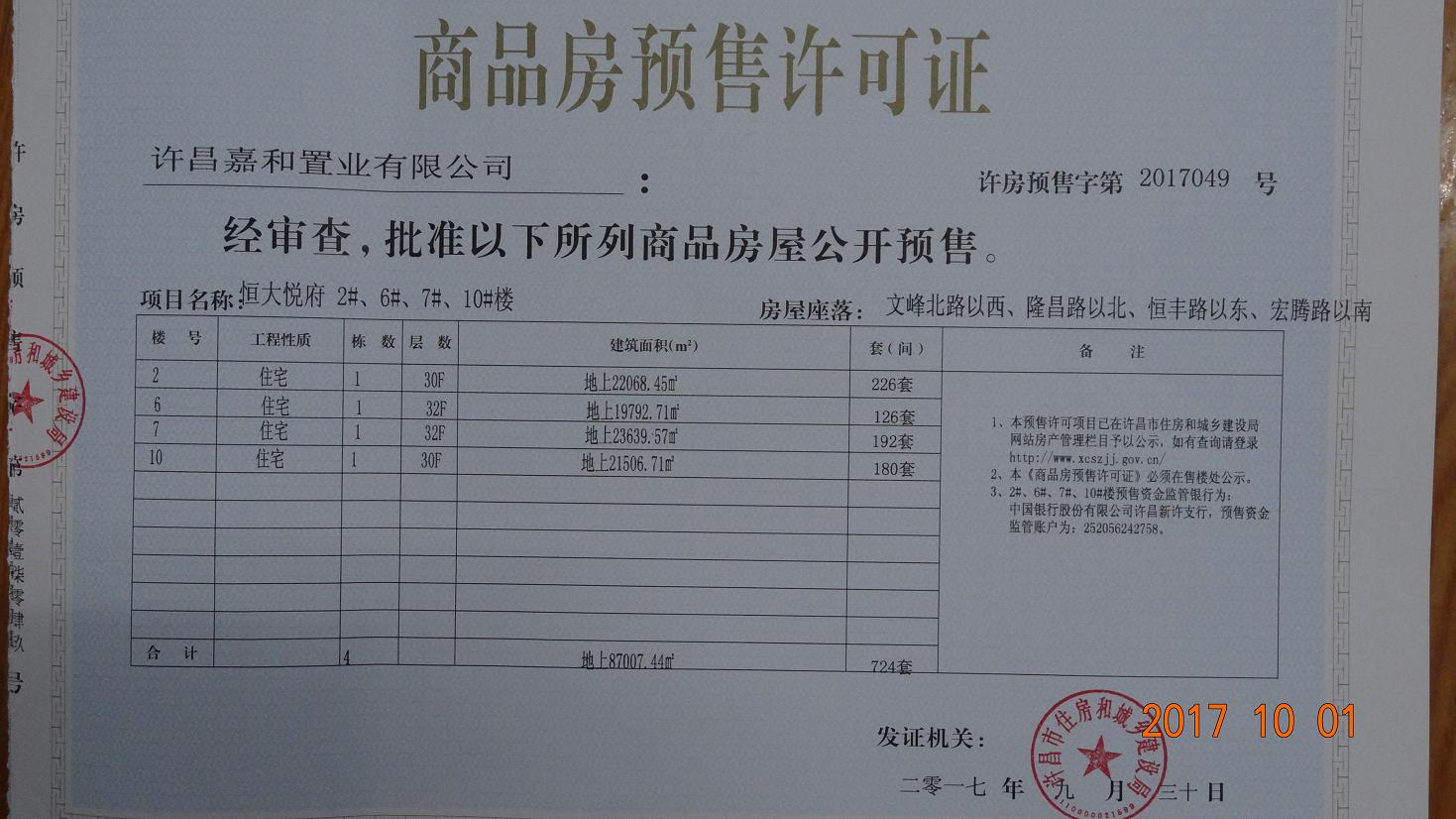 许房预售字第2017049号(许昌嘉和置业有限公司)