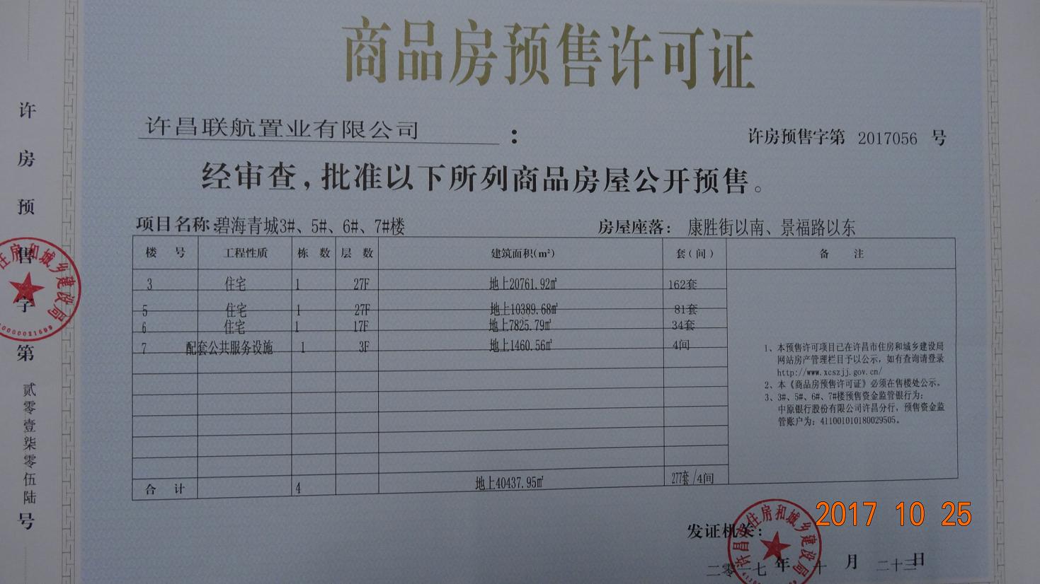 许房预售字第2017056号(许昌联航置业有限公司)