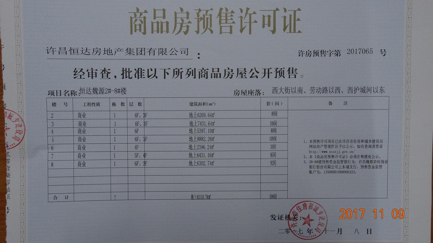 许房预售字第2017065号(许昌恒达房地产集团有限公司)