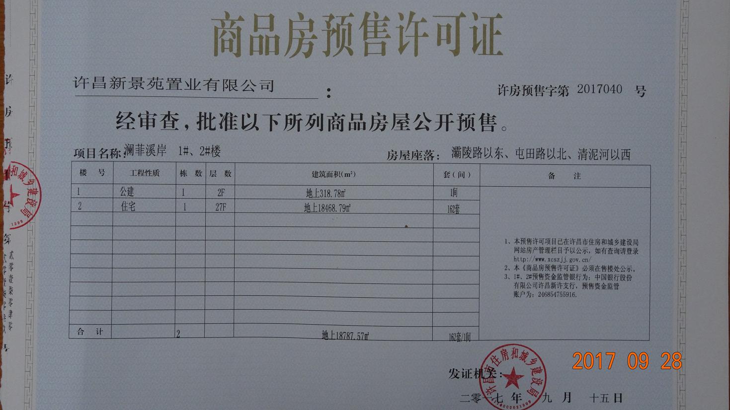 许房预售字第2017040号(许昌新景苑置业有限公司)