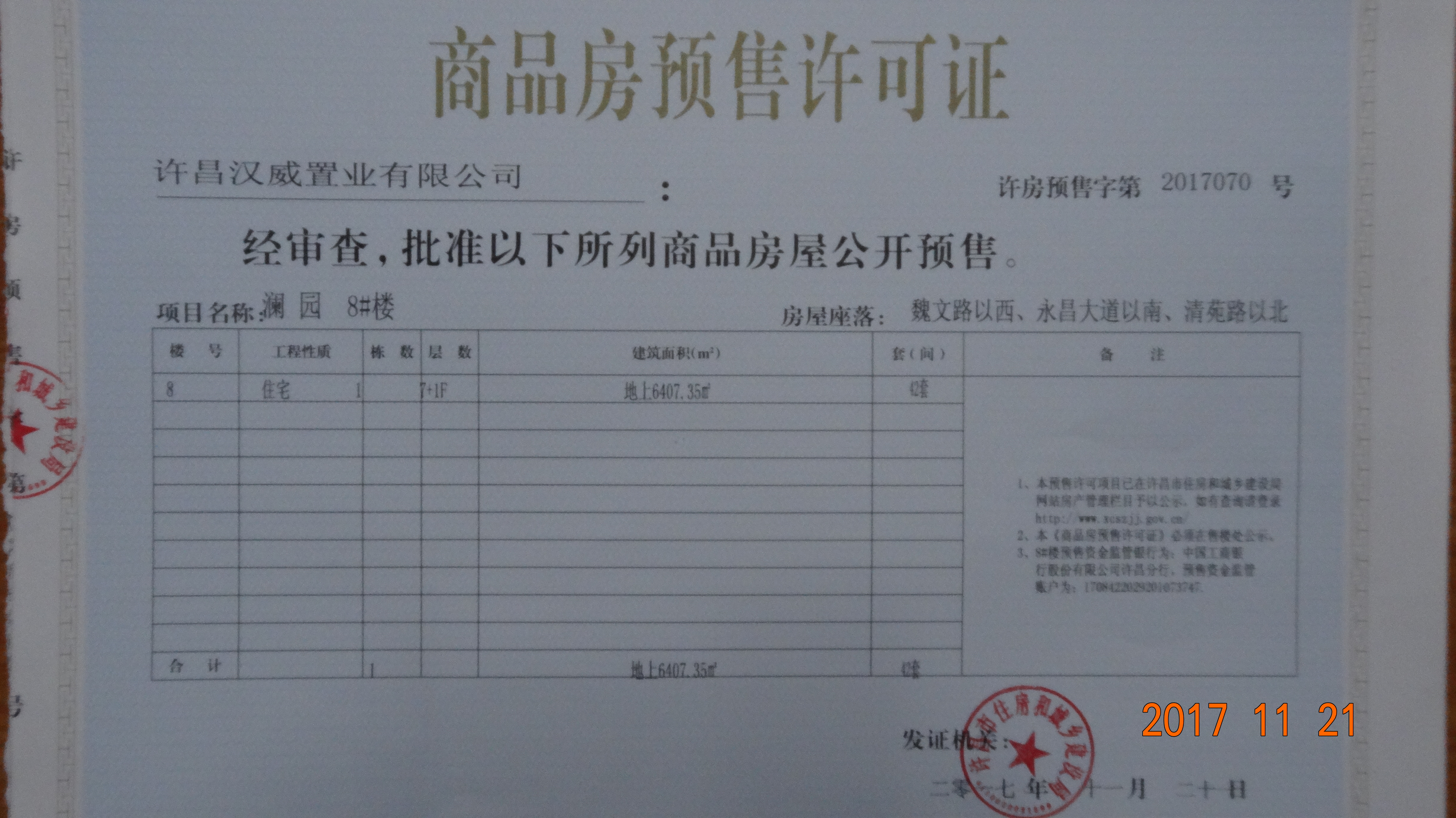 许房预售字第2017070号(许昌汉威置业有限公司)