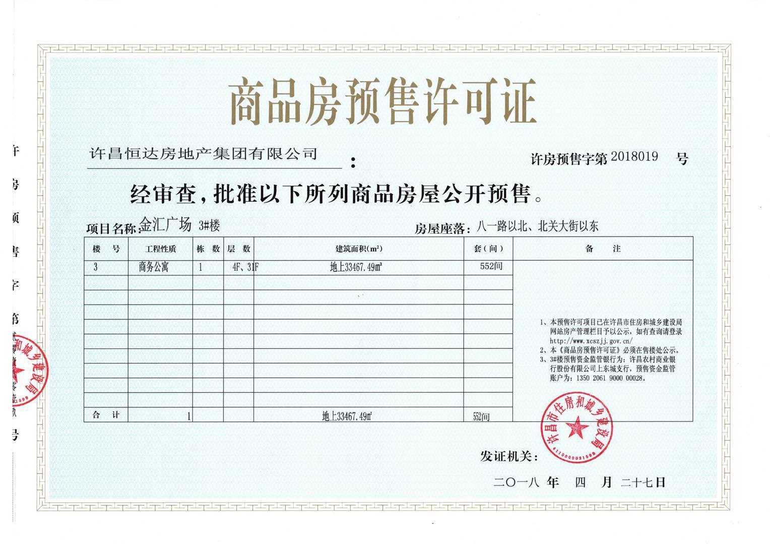 许房预售字第2018019号(许昌恒达房地产集团有限公司)