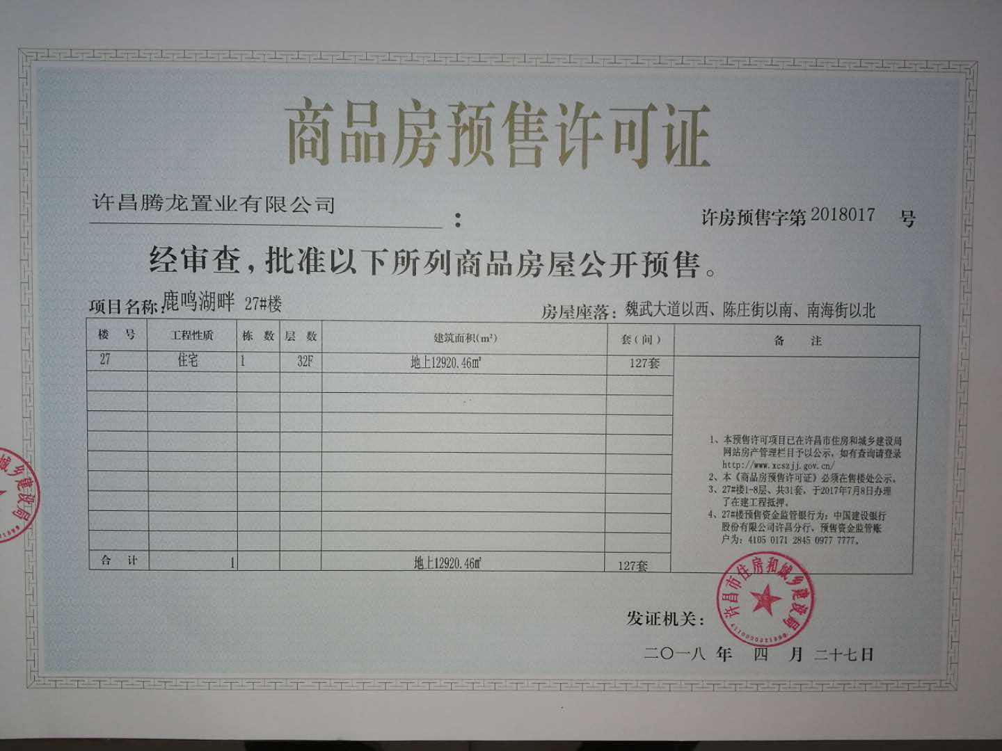 许房预售字第2018017号(许昌腾龙置业有限公司)