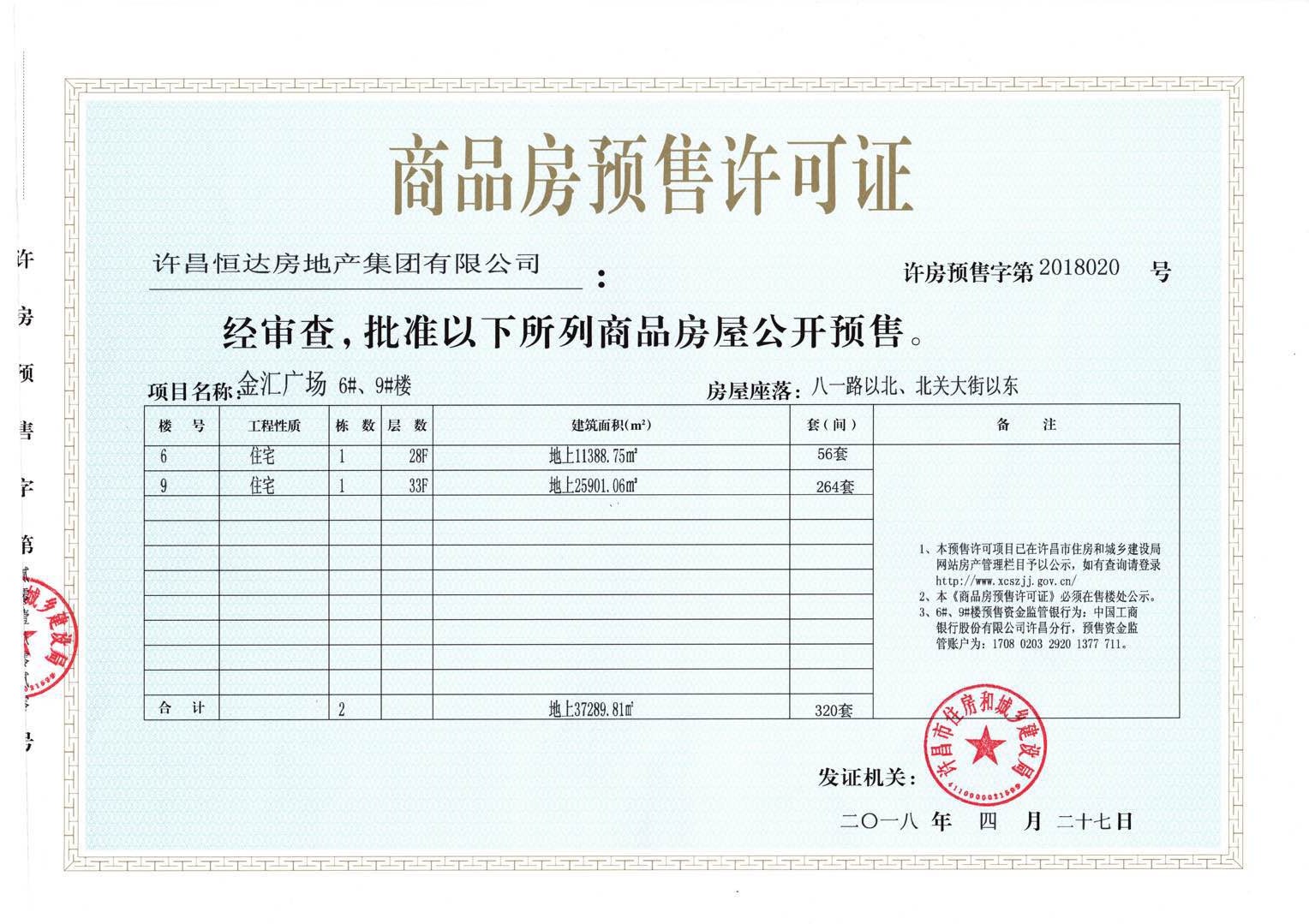 许房预售字第2018020号(许昌恒达房地产集团有限公司)