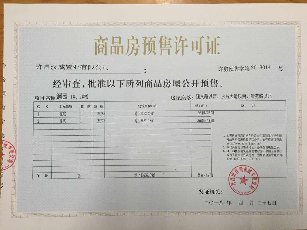 许房预售字第2018014号(河南汉威置业有限公司)