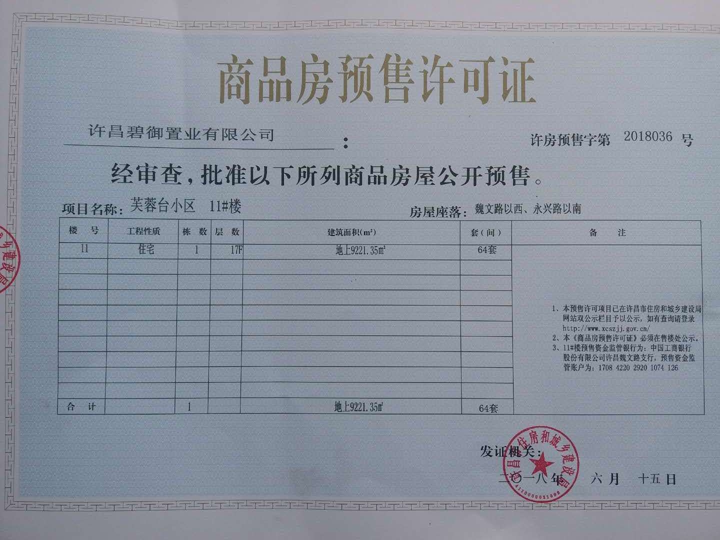 许房预售字第2018036号(许昌碧御置业有限公司)