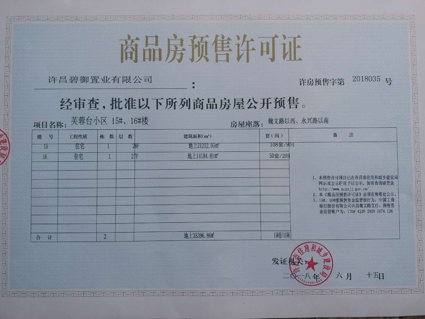 许房预售字第2018035号(许昌碧御置业有限公司)