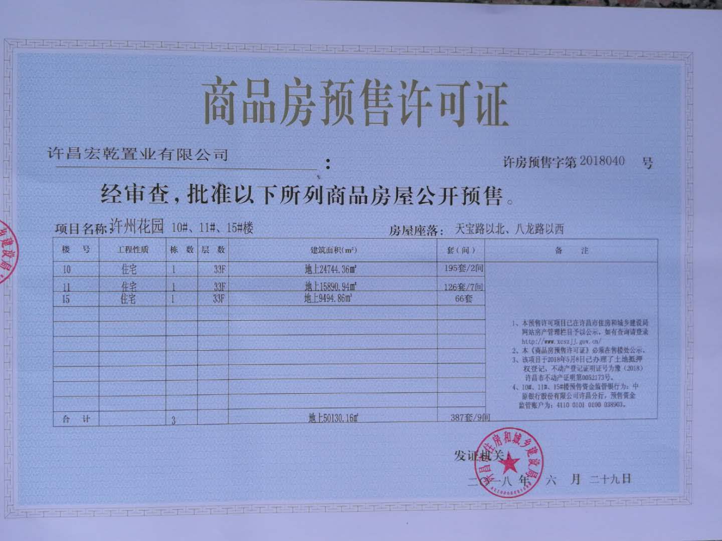 许房预售字第2018040号(许昌宏乾置业有限公司)