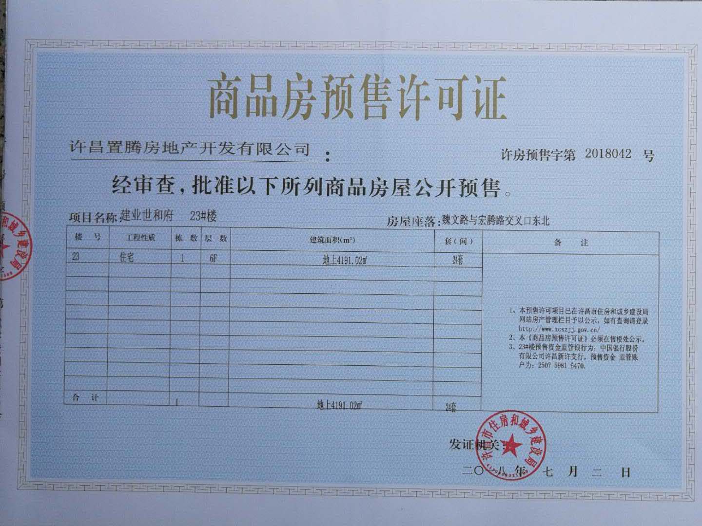 许房预售字第2018042号(许昌置腾房地产开发有限公司)