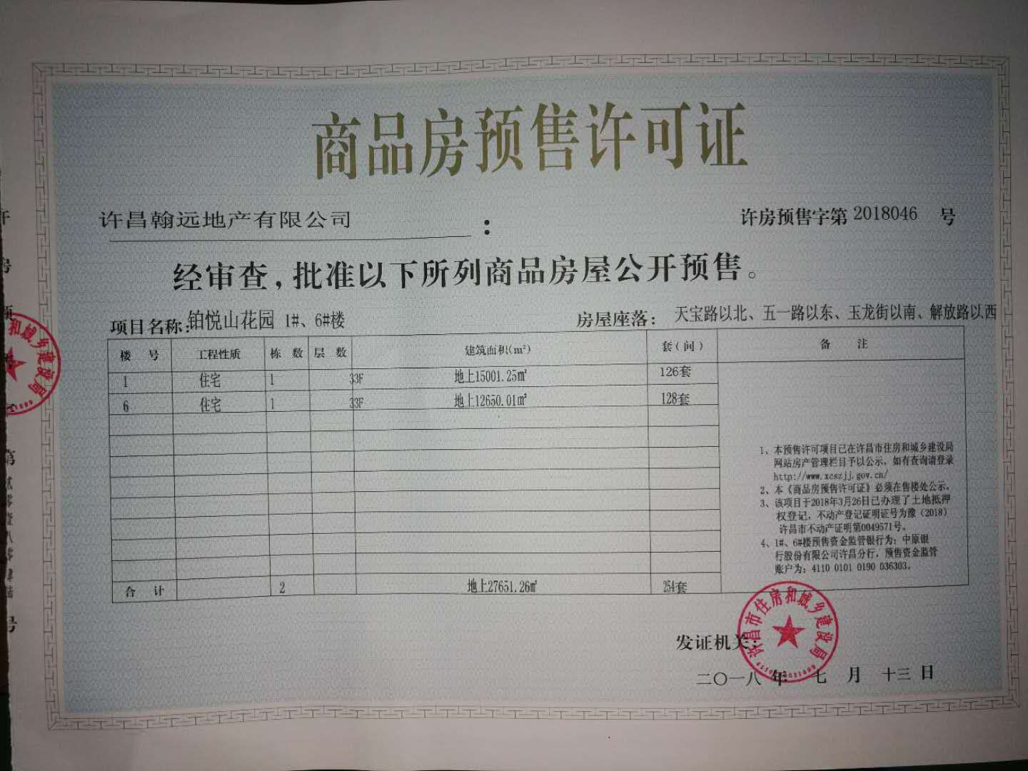 许房预售字第2018046号(许昌翰远地产有限公司)
