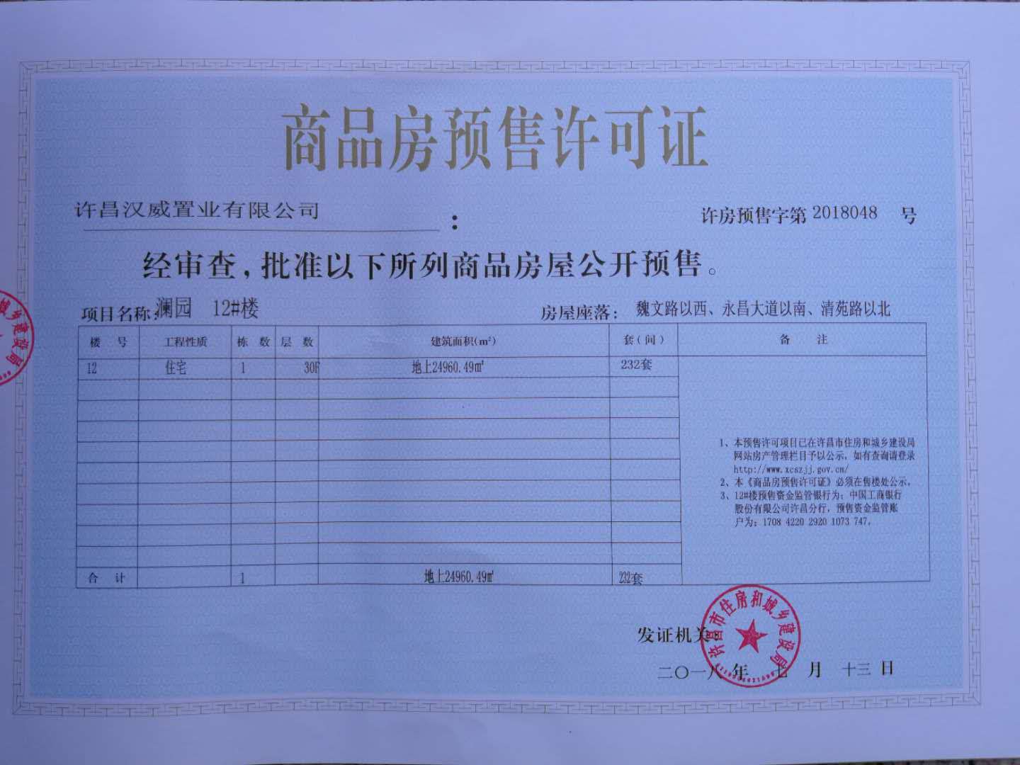 许房预售字第2018048号(许昌汉威置业有限公司)