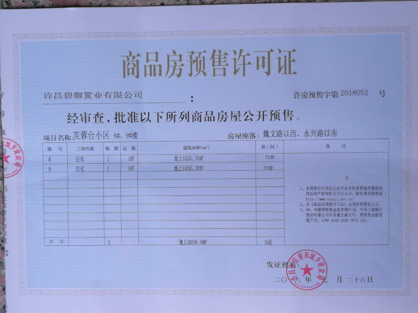 许房预售字第2018052号(许昌碧御置业有限公司)