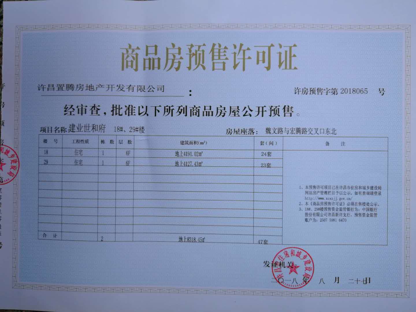 许房预售字第2018065号(许昌置腾房地产开发有限公司)