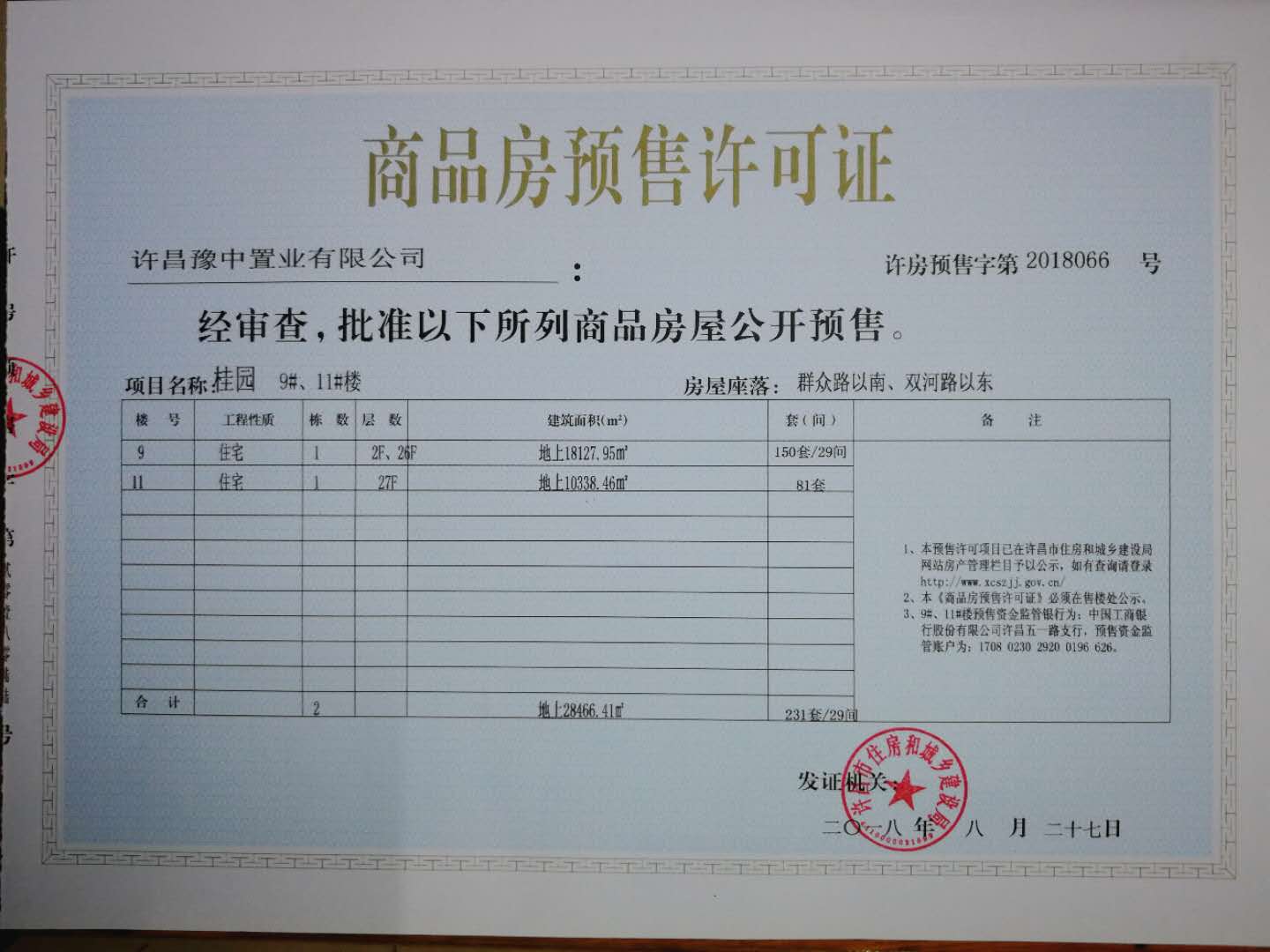 许房预售字第2018066号(许昌豫中置业有限公司)