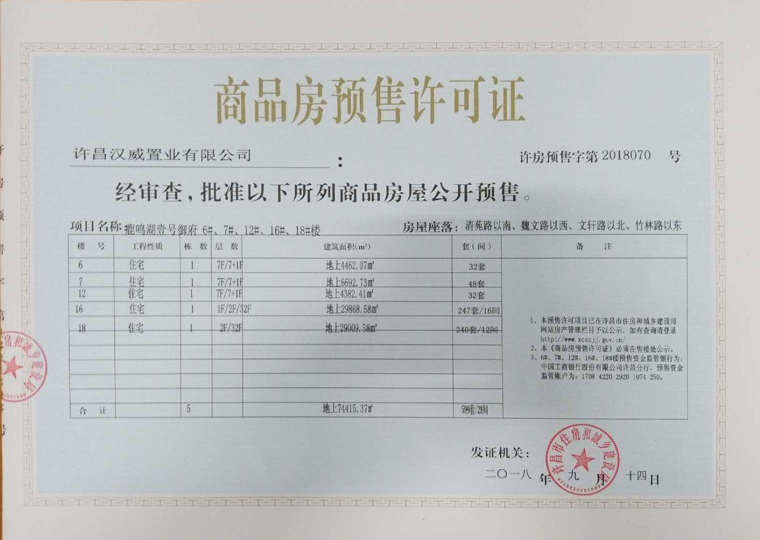 许房预售字第2018070号(许昌汉威置业有限公司)