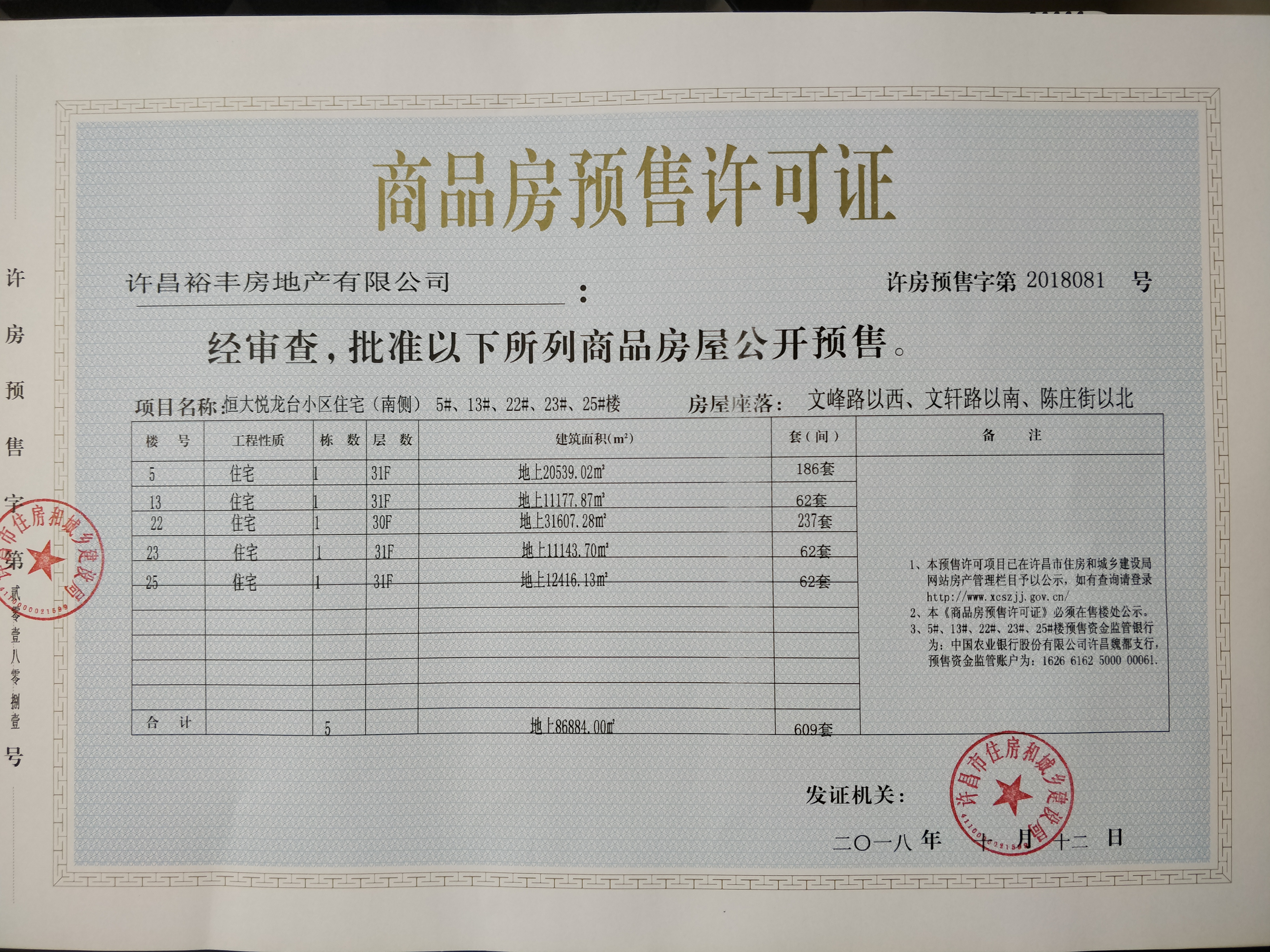 许房预售字第2018081号(许昌裕丰房地产有限公司)