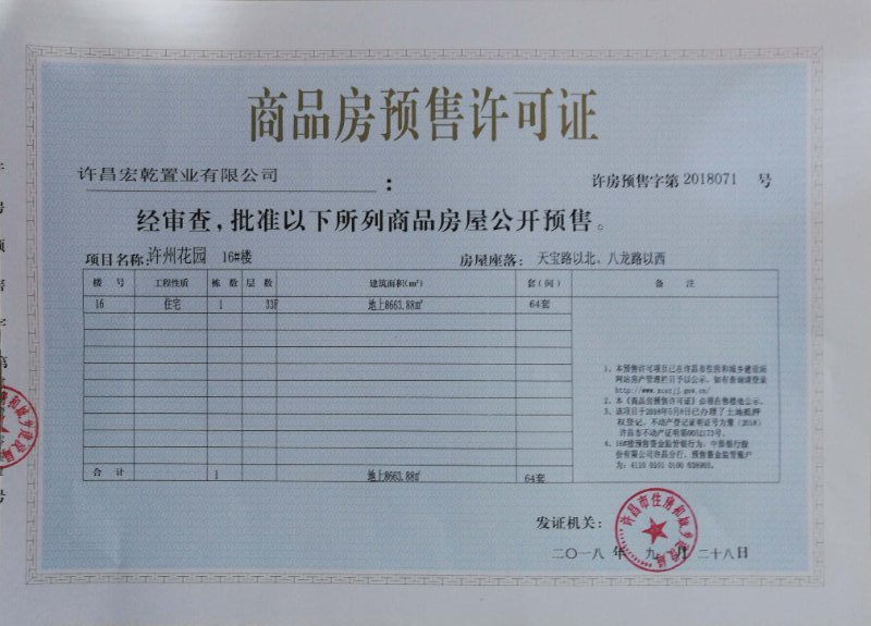 许房预售字第2018071号(许昌宏乾置业有限公司)