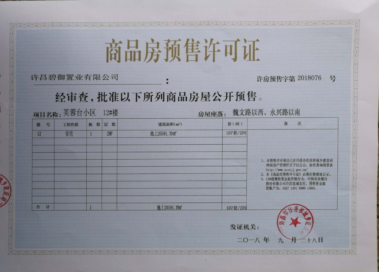 许房预售字第2018076号(许昌碧御置业有限公司)