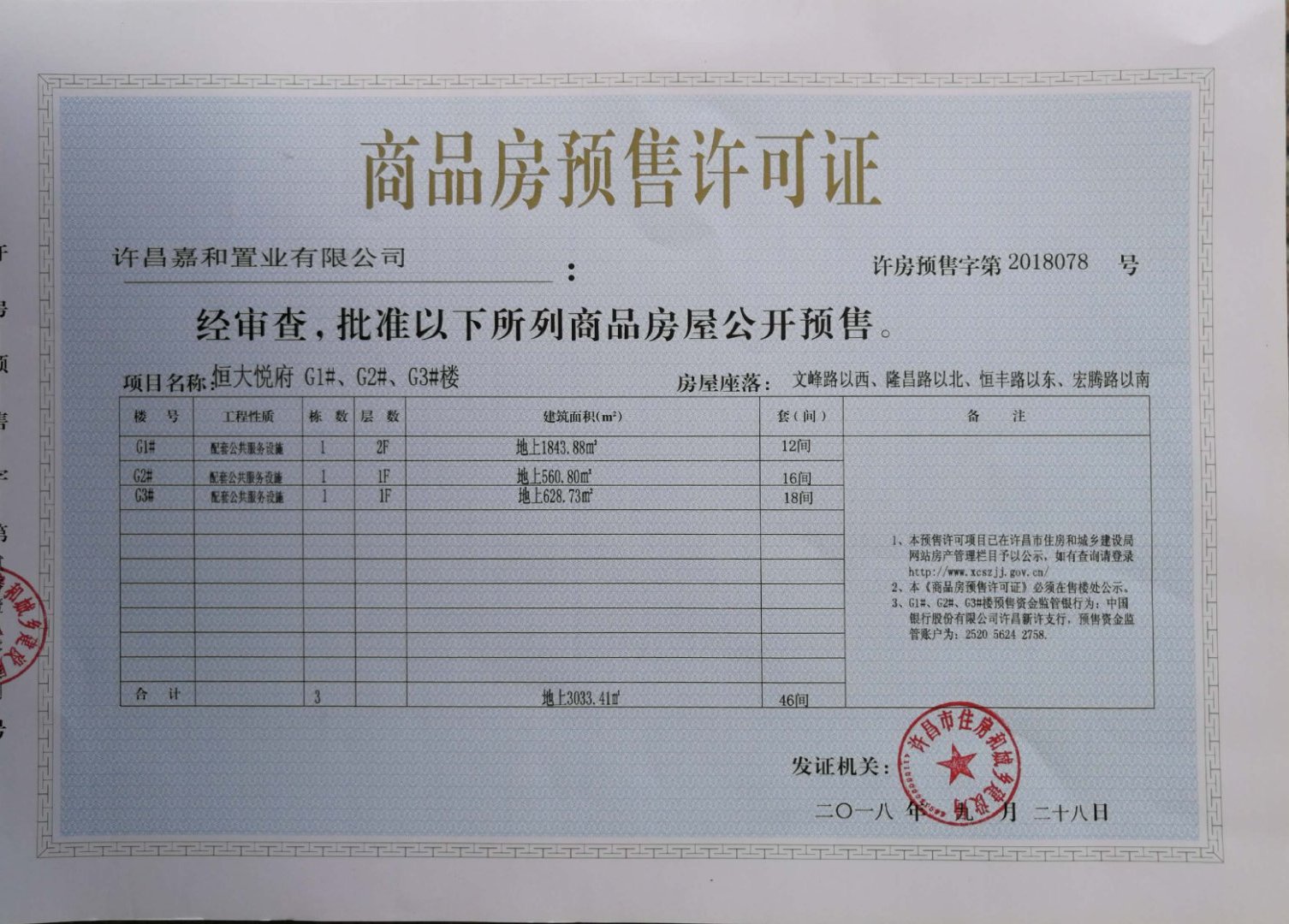 许房预售字第2018078号(许昌嘉和置业有限公司)
