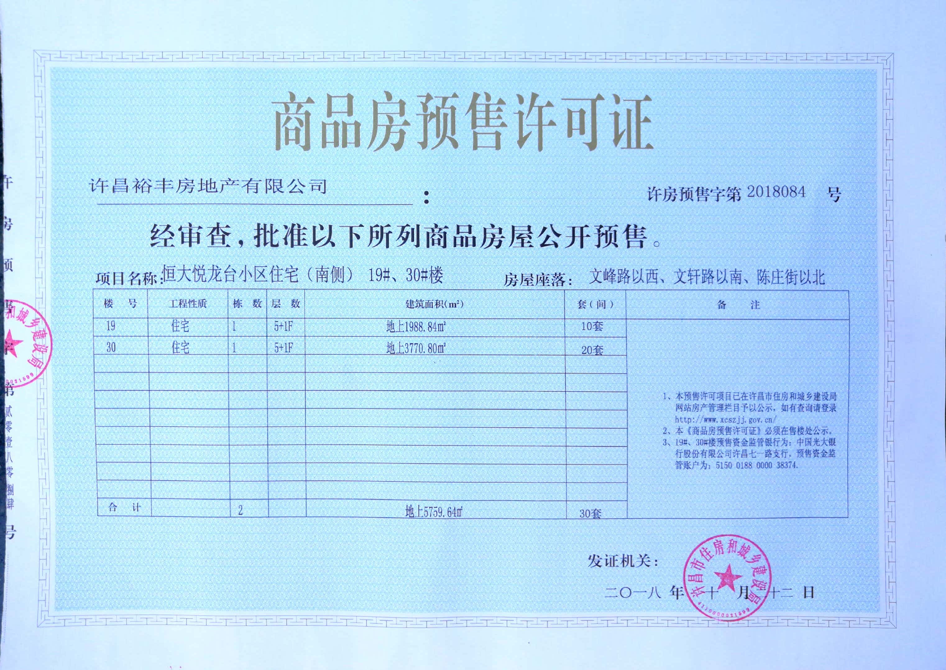 许房预售字第2018084号(许昌裕丰房地产有限公司)