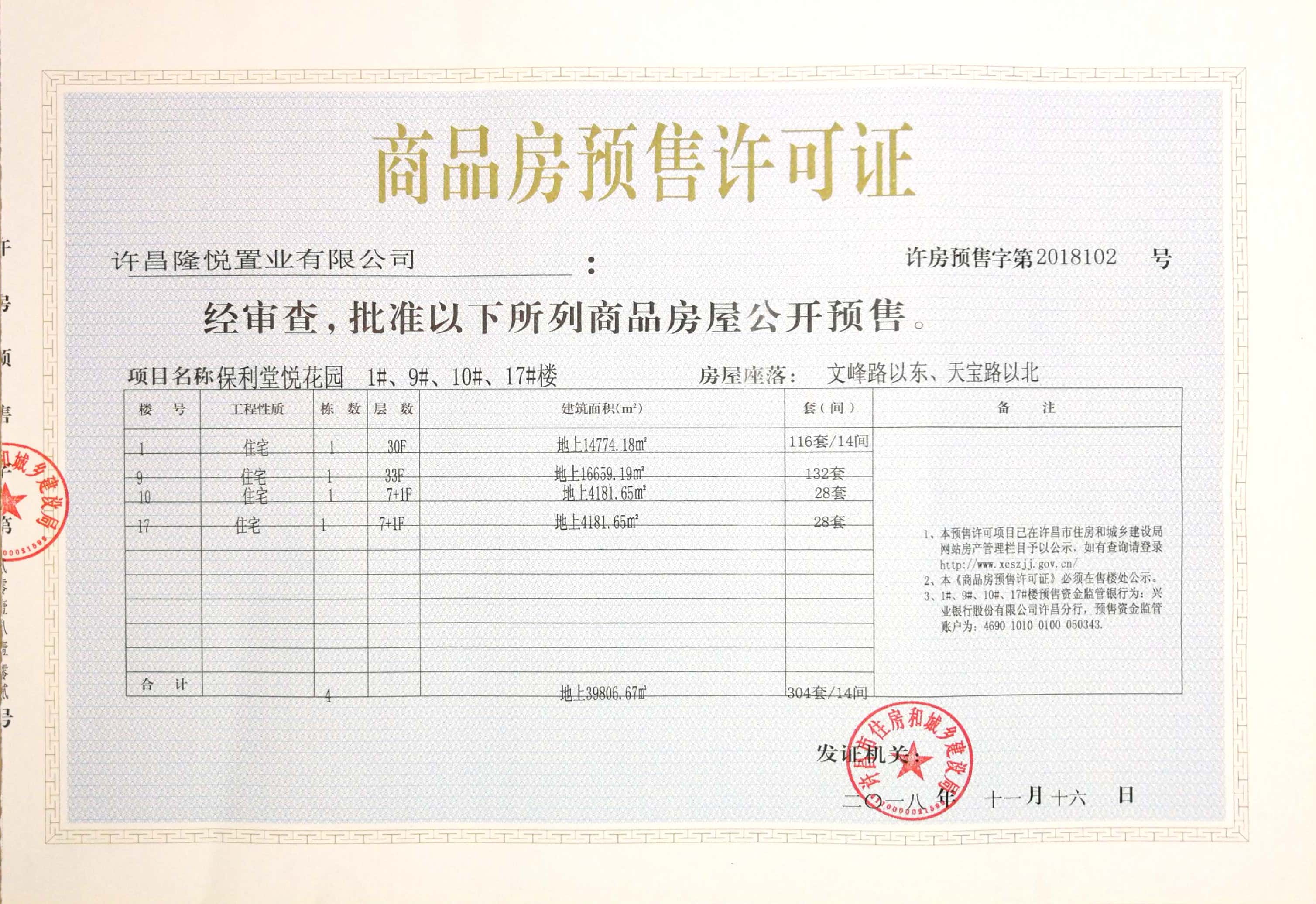 许房预售字第2018102号(许昌隆悦置业有限公司)