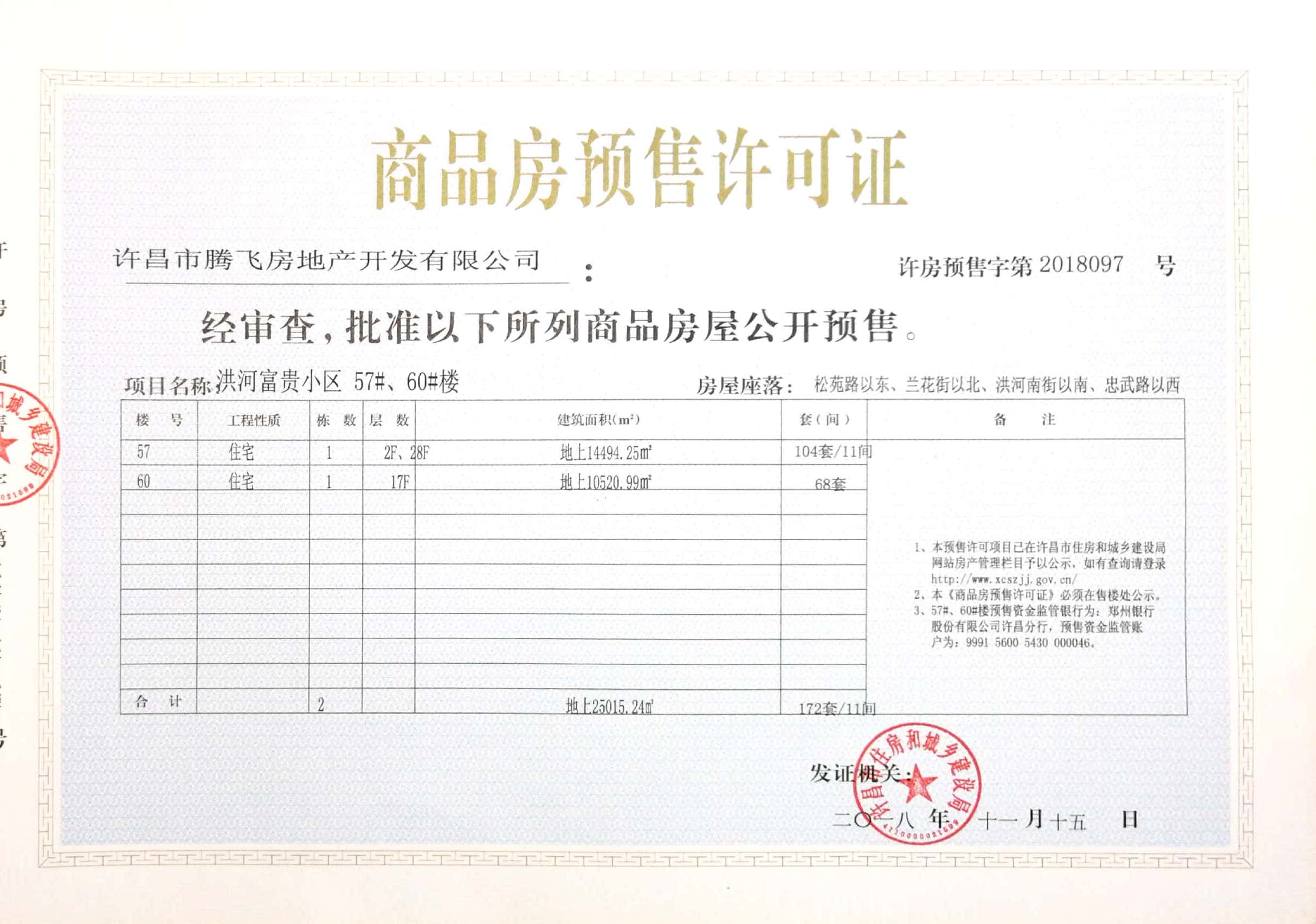 许房预售字第2018097号(许昌市腾飞房地产开发有限公司)