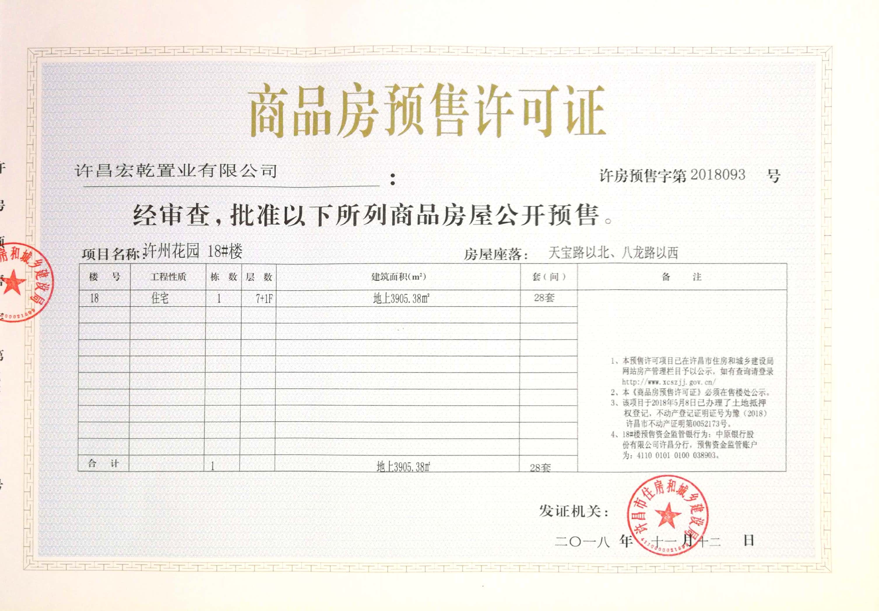 许房预售字第2018093号(许昌宏乾置业有限公司)