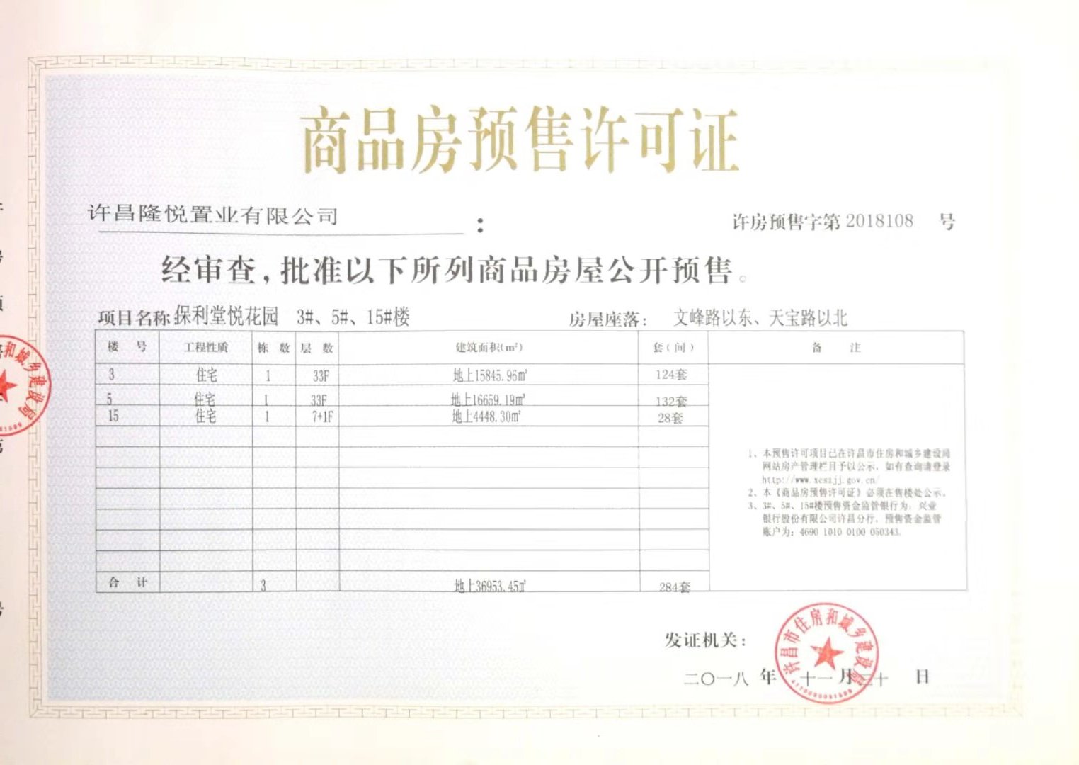 许房预售字第2018108号(许昌隆悦置业有限公司)