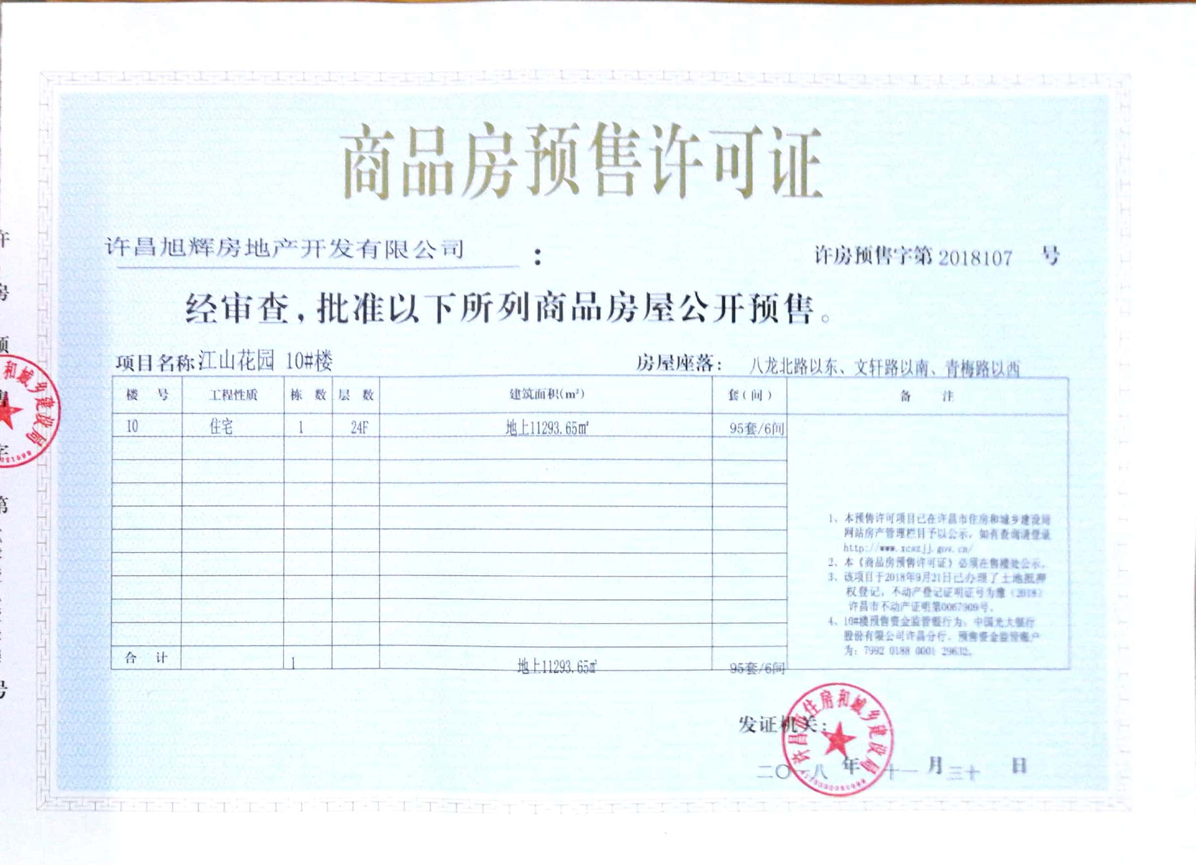 许房预售字第2018107号(许昌旭辉房地产开发有限公司)