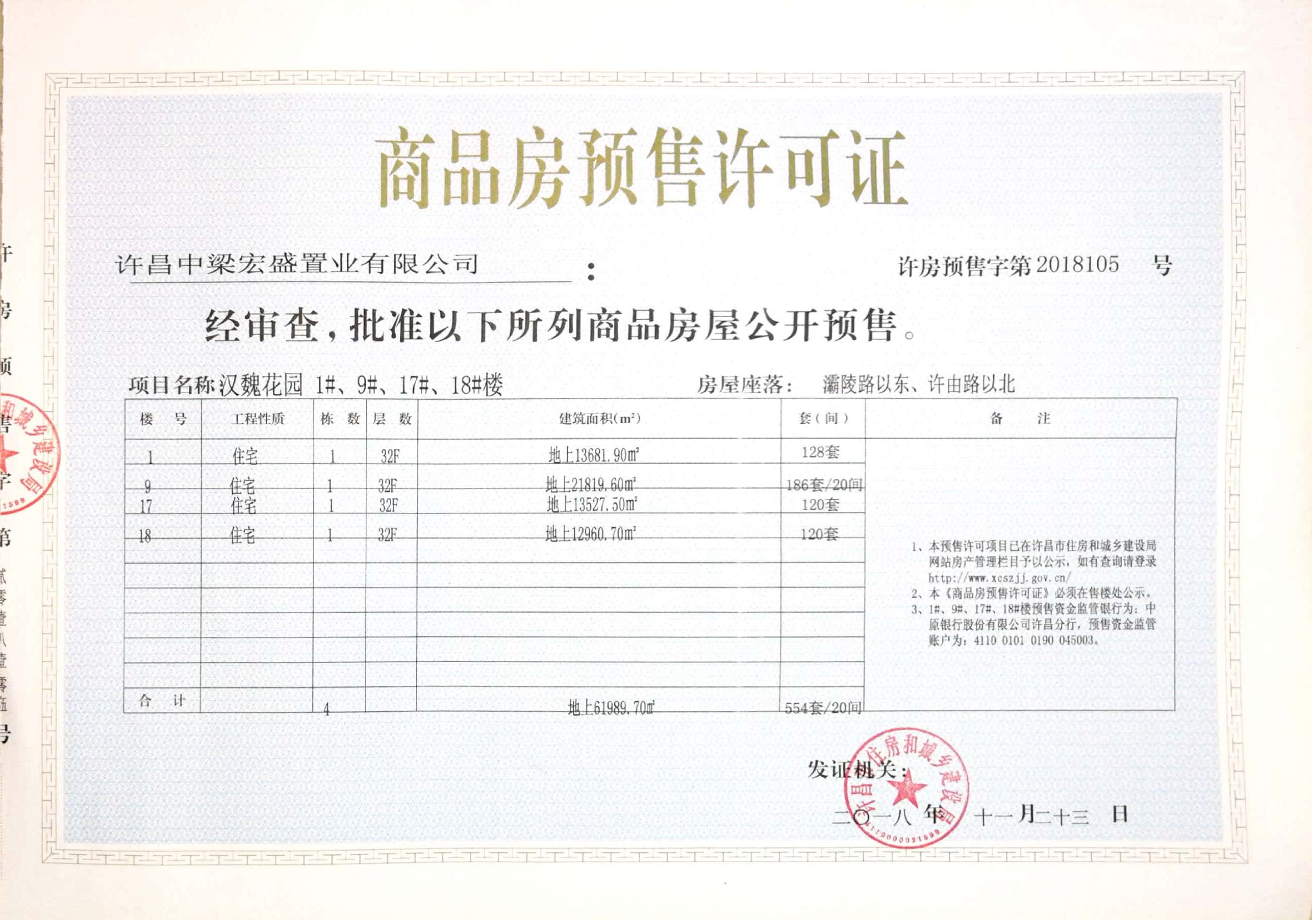 许房预售字第2018105号(许昌中梁宏盛置业有限公司)