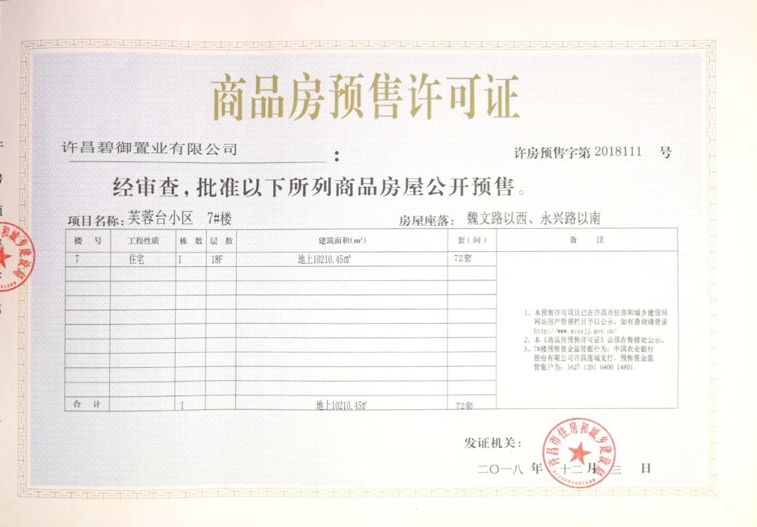 许房预售字第2018111号(许昌碧御置业有限公司)